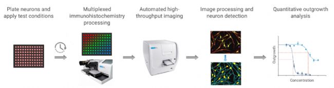 圖:基于免疫熒光染色的神經(jīng)突生長高通量分析方案流程
