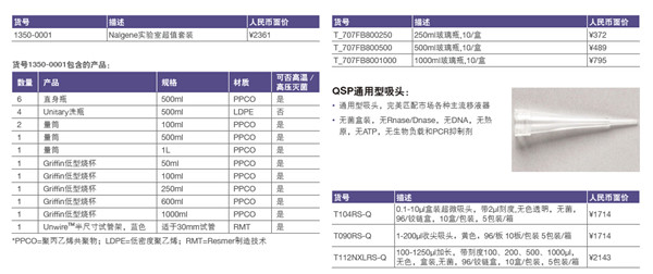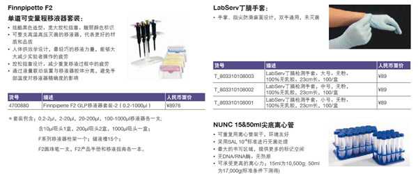 ① Nalgene實(shí)驗(yàn)室超值套裝(包含20個(gè)產(chǎn)品) ④ Finnpipette F2單道可變量程移液器套裝