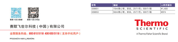 • 訂購(gòu)產(chǎn)品時(shí)需提供促銷編碼(RemoraNLP002)方可享受超低價(jià)特惠禮遇收到優(yōu)惠包發(fā)票后,回傳發(fā)票掃描件至cn.remora@thermofisher.com,可免費(fèi)獲得價(jià)值100元的Nalgene運(yùn)動(dòng)水杯一個(gè),郵件標(biāo)題為“賽默飛新實(shí)驗(yàn)室資助活動(dòng)”
