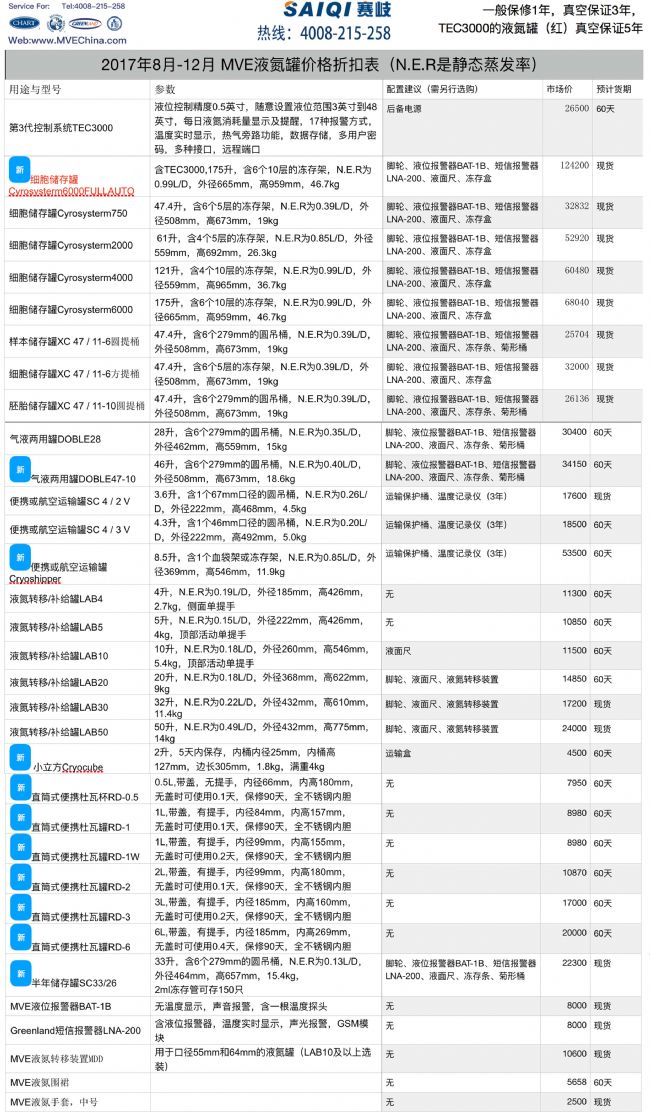 我司(上海賽岐貿(mào)易有限公司)代理約10年的金鳳液氮罐、MVE液氮罐, 現(xiàn)征對開學季促銷(2017年8月16日至2017年10月15日),凡以正常批發(fā)折扣價(不含偏遠地區(qū)運費)購買的MVE液氮罐新品的客戶,可獲得合同金額10%的京東禮品卡。