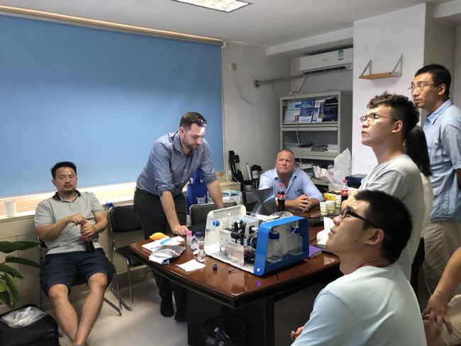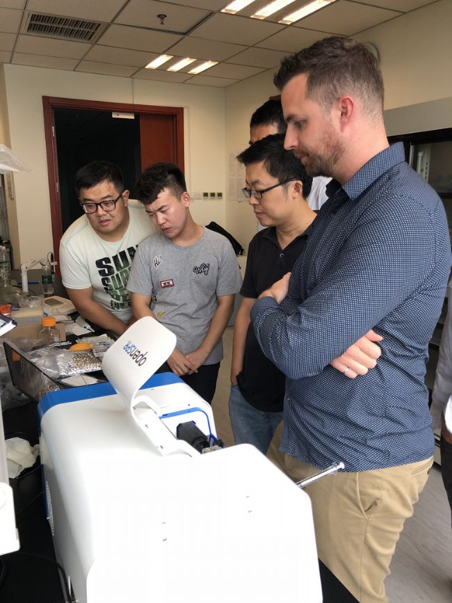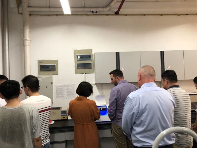 Nicoya公司此次在華的行程,受到老師和同學們的熱烈歡迎。Ryan及Jim與老師們就目前相關研究工作中遇到的問題和LSPR技術能給研究提供哪些幫助進行了熱烈探討。并對老師們的樣本進行了現(xiàn)場檢測,儀器簡便的操作和可靠的結果受到老師和同學們的一致好評![]()