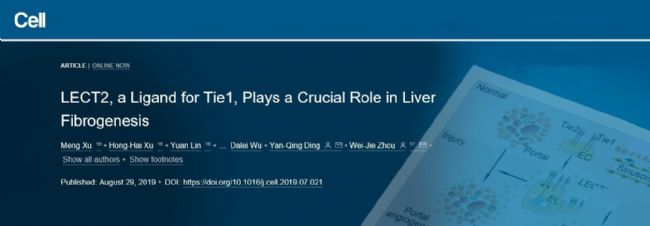 2019年8月29日,南方醫(yī)科大學周偉杰團隊在Cell雜志上在線發(fā)表了題為“LECT2, a Ligand for Tie1, Plays a Crucial Role in Liver Fibrogenesis”的肝纖維化相關研究論文,其中所使用的Lect2-Cre小鼠由南模生物提供!