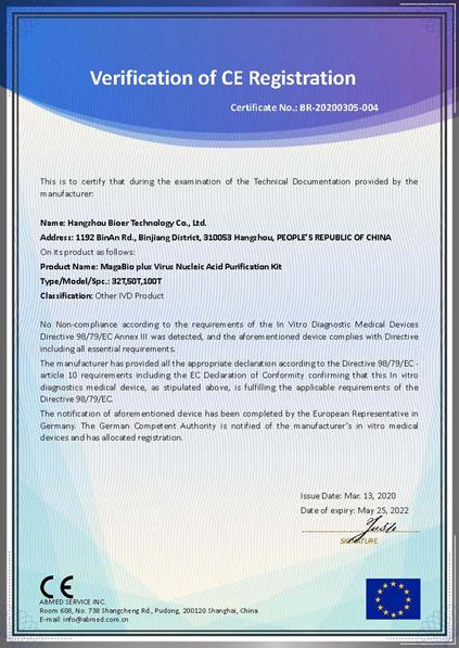 博日科技磁珠法核酸提取試劑盒歐盟CE認(rèn)證