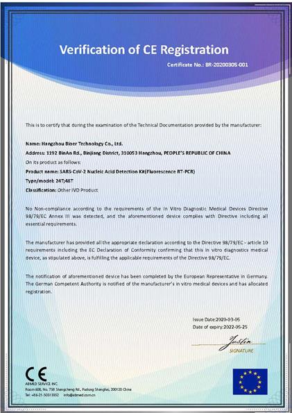 博日科技新冠試劑產(chǎn)品歐盟CE認(rèn)證