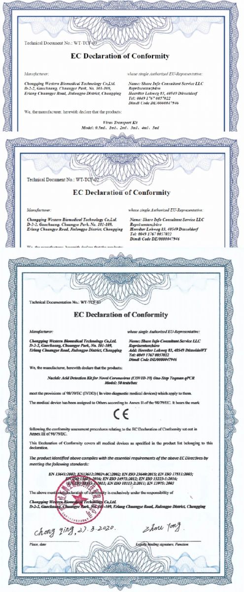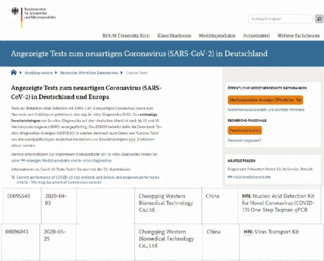 威斯騰生物新冠病毒核酸檢測試劑盒及相關(guān)產(chǎn)品獲CE認(rèn)證及德國DIMDI對外公示已批復(fù)的新冠相關(guān)試劑公司注冊。