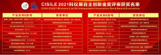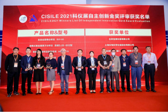 “CISILE2021科儀展自主創(chuàng)新金獎”經(jīng)過長達(dá)數(shù)月的遴選和評審后,獲獎名單于2021年5月10日在北京國家會議中心正式公布,并現(xiàn)場向獲獎單位頒發(fā)證書獎杯。“CISILE2021科儀展自主創(chuàng)新金獎”獲獎設(shè)備涵蓋了電子顯微鏡、光譜儀、力學(xué)特性分析儀、熒光光度計、口罩顆粒物過濾率及氣流阻力測試儀、密度儀、金屬3D打印件、有機(jī)玻璃構(gòu)件整體成型專用加熱爐、尿典分析儀、重金屬離子分析儀、土壤樣品制備系統(tǒng)、兩蟲檢測自動識別系統(tǒng)、測汞儀、超低溫冷阱、數(shù)碼顯微無線互動系統(tǒng)、遠(yuǎn)程孢子自動捕捉儀等細(xì)分領(lǐng)域,獲獎單位合計22家。