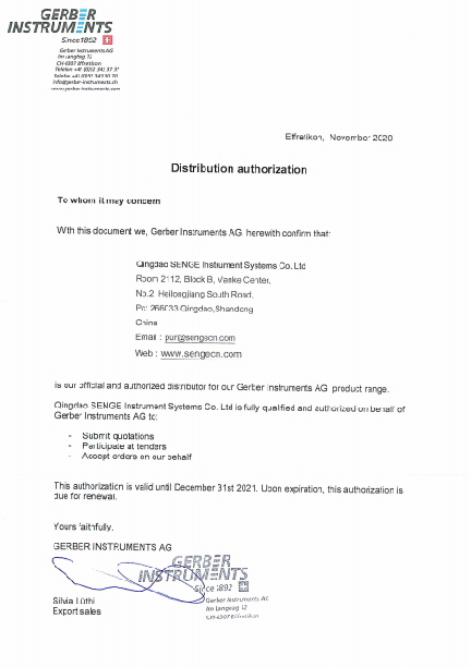 青島圣吉儀器系統(tǒng)有限公司和瑞士Gerber (蓋勃) 儀器(Gerber Instruments),自2020年11月起,達(dá)成戰(zhàn)略合作協(xié)議,負(fù)責(zé)該品牌及其產(chǎn)品在中國區(qū)的銷售工作。