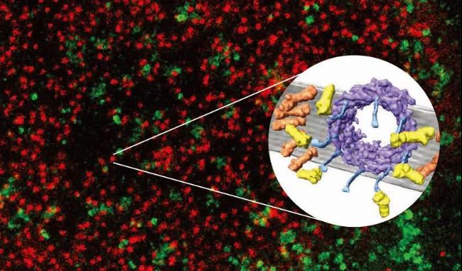 冷凍電子斷層圖像。與核孔復(fù)合體相連的蛋白酶體(紫色)。由分子結(jié)構(gòu)系Ben Engel博士提供。生物學(xué),生物化學(xué)MPI,馬丁斯利德,德國