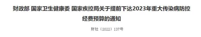 財(cái)政部 國家衛(wèi)生健康委 國家疾控局關(guān)于提前下達(dá)2023年重大傳染病防控經(jīng)費(fèi)預(yù)算的通知