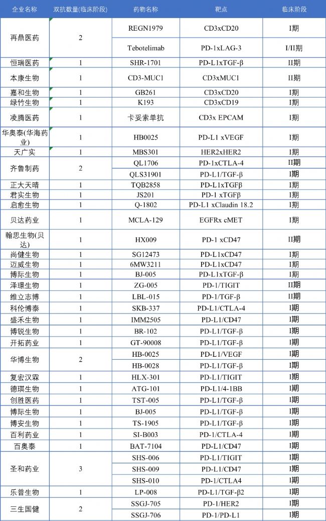 表2 國內(nèi)企業(yè)雙特異性抗體研究布局(臨床研發(fā)階段)