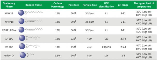 擁有三鍵C18,雙鍵C18,單鍵C18,三鍵C8,雙鍵C8,單鍵C8,NH2,Amide,已基苯基,五氟苯基PFP,二醇基,RPC18,帶電荷PHS,獨(dú)特T3等鍵合修飾技術(shù),為生物醫(yī)藥分離純化及分析檢測(cè)提供功能豐富的系列產(chǎn)品。