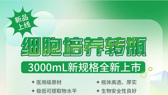 潔特生物推出3000mL新規(guī)格細(xì)胞培養(yǎng)轉(zhuǎn)瓶