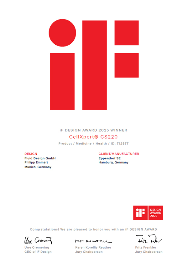 在設(shè)計(jì)與創(chuàng)新的璀璨舞臺(tái)上,又一顆明星閃耀登場(chǎng)!我們懷著無(wú)比激動(dòng)與自豪的心情向大家宣布:Eppendorf CellXpert CS220 CO2 培養(yǎng)搖床在競(jìng)爭(zhēng)激烈的醫(yī)學(xué)/健康產(chǎn)品領(lǐng)域中強(qiáng)勢(shì)突圍,成功摘得 2025 年 iF 設(shè)計(jì)獎(jiǎng)的榮譽(yù)!