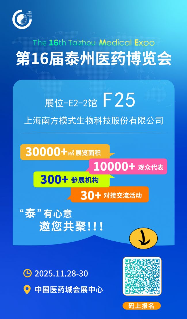 當(dāng)前位置 > 首頁 > 行業(yè)資訊 > 展會 > 南模生物邀您相約泰州第十六屆泰州醫(yī)藥博覽會