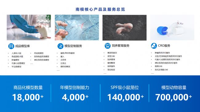上海南方模式生物科技股份有限公司(Shanghai Model Organisms Center, Inc.,簡稱"南模生物"),成立于2000年9月,是一家上交所科創(chuàng)板上市高科技生物公司(股票代碼:688265),始終以編輯基因、解碼生命為己任,專注于模式生物領(lǐng)域,打造了以基因修飾動物模型研發(fā)為核心,涵蓋多物種模型構(gòu)建、飼養(yǎng)繁育、表型分析、藥物臨床前評價等多個技術(shù)平臺,致力于為全球高校、科研院所、制藥企業(yè)等客戶提供全方位、一體化的基因修飾動物模型產(chǎn)品解決方案。