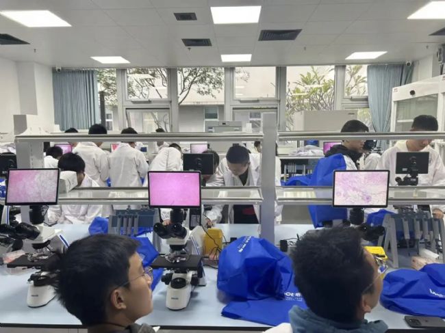 深圳理工大學合成生物學院在教學過程中,尤其注重對學生實踐能力與科研素養(yǎng)的培養(yǎng)。在日教學活動中,學生需通過顯微鏡觀察細胞結構、組織形態(tài)以及合成生物體系構建過程,傳統(tǒng)顯微鏡教學往往難以實現(xiàn)實時互動與集體研討。學院教師提出“需要有包含互動軟件顯微鏡來做教學活動需要”,明美光電針對性推薦“1+15教學互動系統(tǒng)”,完美回應了這一教學場景中的互動化、可視化與協(xié)同化需求。