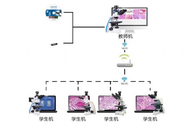 明美顯微互動教學系統(tǒng)并不僅僅是硬件設備的堆疊,更是一套完整的教學解決方案。系統(tǒng)主要包括: