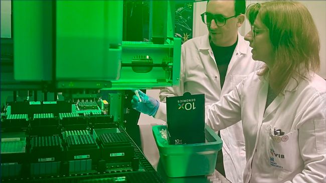 Niels Vandamme博士與VIB單細(xì)胞核心實驗室的項目經(jīng)理Ria Roelandt正在使用Hamilton Vantage平臺。實驗室已在該平臺上實現(xiàn)10x Genomics工作流程的全自動化,確保單細(xì)胞處理的一致性和可擴(kuò)展性。