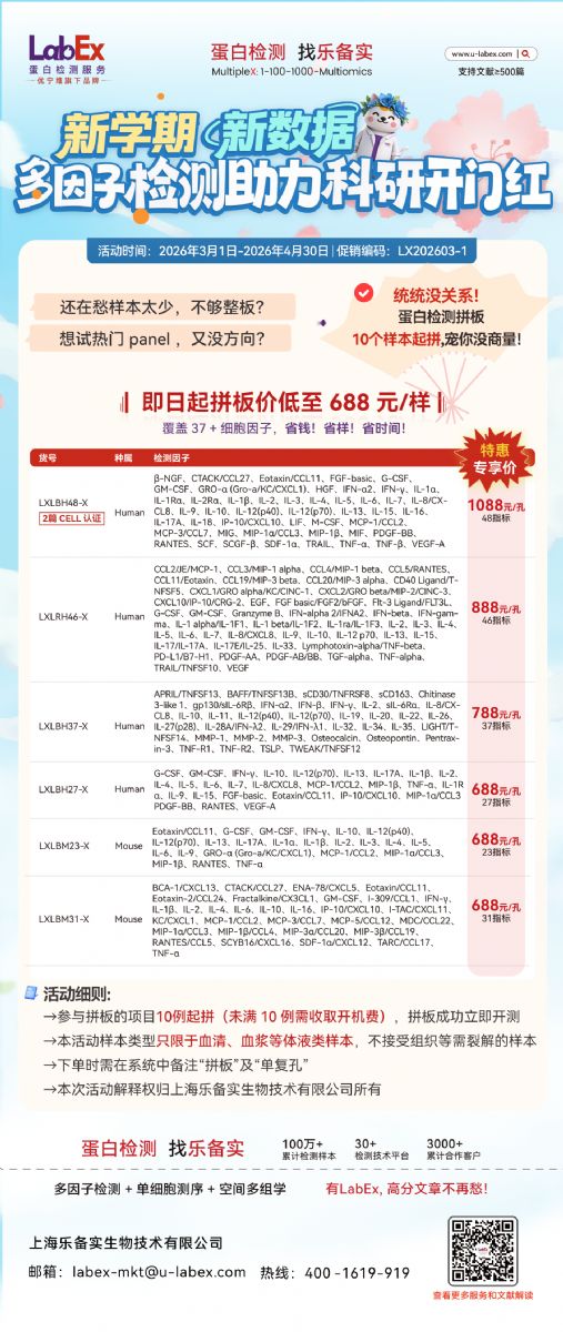 樂(lè)備實(shí)(上海優(yōu)寧維生物科技股份有限公司旗下全資子公司),是國(guó)內(nèi)專注于提供高質(zhì)量蛋白檢測(cè)以及組學(xué)分析服務(wù)的實(shí)驗(yàn)服務(wù)專家,自2018年成立以來(lái),樂(lè)備實(shí)不斷尋求突破,公司的服務(wù)技術(shù)平臺(tái)已擴(kuò)展到單細(xì)胞測(cè)序、空間多組學(xué)、流式檢測(cè)、超敏電化學(xué)發(fā)光、Luminex多因子檢測(cè)、抗體芯片、PCR Array、ELISA、Elispot、PLA蛋白互作、多色免疫組化、DSP空間多組學(xué)等30多個(gè),建立起了一套涵蓋基因、蛋白、細(xì)胞以及組織水平實(shí)驗(yàn)的完整檢測(cè)體系。