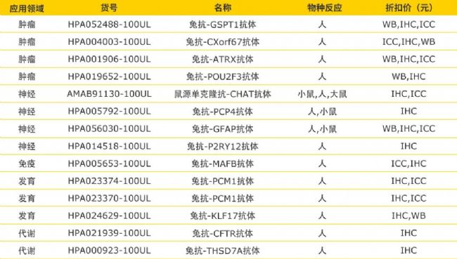 訂購(gòu)HPA金標(biāo)抗體可享受專屬優(yōu)惠待遇。促銷產(chǎn)品覆蓋腫瘤研究、神經(jīng)科學(xué)、代謝疾病等多個(gè)熱門(mén)領(lǐng)域的常用靶點(diǎn)。