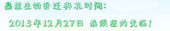 因公司規(guī)模擴(kuò)大及業(yè)務(wù)發(fā)展需要,晶能生物將于2013年12月27日由徐匯區(qū)肇嘉浜路446弄1號(hào)樓1003室搬遷至上海市漕河涇開(kāi)發(fā)區(qū)漕寶路401號(hào)3號(hào)樓4A1,具體聯(lián)系方式不變。公司新址位于上海漕河涇開(kāi)發(fā)區(qū),開(kāi)發(fā)區(qū)環(huán)境優(yōu)美、科技先進(jìn),晶能生物以此為平臺(tái)謀求更快的發(fā)展。