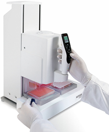 VIAFLO 96/384手持式電動(dòng)移液器可提高實(shí)驗(yàn)室效率和移液精度,應(yīng)用于96孔和384孔板的快速分發(fā)和復(fù)制、試劑添加或連續(xù)稀釋等,其操作就如同使用標(biāo)準(zhǔn)電動(dòng)移液器向單只試管中移液一樣簡單。VIAFLO 96/384附帶10個(gè)預(yù)定義的移液模式,使系統(tǒng)能夠立即有效率地進(jìn)行使用。另有40個(gè)用戶自定義指定允許的程序,即使是最多樣和復(fù)雜的移液操作,VIAFLO 96/384手持式電動(dòng)移液器仍然可以連接到PC端,通過VIALINK軟件實(shí)現(xiàn)簡易定制移液模式或程序,以及固件升級(jí)。