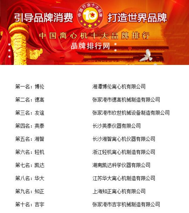 榮登“2018年度中國(guó)離心機(jī)十大品牌”榜單的優(yōu)秀企業(yè)和品牌如下: