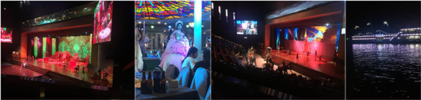 街頭的霓虹燈亮起,商場門口的彩燈閃爍,美食夜市人頭聳動(dòng),動(dòng)感的音樂向游客傳遞著自己的風(fēng)情萬種。一些商店在重點(diǎn)位置掛放著晚上各大劇院的門票信息,不同的演出內(nèi)容吸引獵奇的觀眾…………