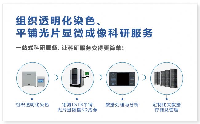 锘海生命科學(xué),為廣大客戶提供專業(yè)的生物組織透明化、免疫染色、平鋪光片顯微鏡3D熒光成像、數(shù)據(jù)分析、數(shù)據(jù)存儲(chǔ)等一站式科研服務(wù),旨在通過精準(zhǔn)、快速、多樣化的科研服務(wù)為每一位生命科學(xué)工作者提供個(gè)體化/定制化的解決方案。