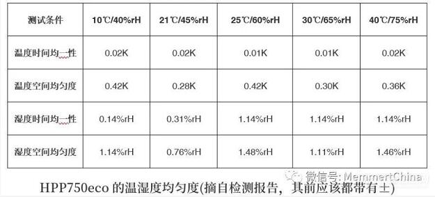 在實(shí)際應(yīng)用中比較關(guān)注的溫度濕度穩(wěn)定性測(cè)試中,Memmert產(chǎn)品的表現(xiàn)同樣驚艷,如上表所示,對(duì)比法規(guī)上溫度±2℃,相對(duì)濕度±5%rH的可允許偏差上限,可以看出Memmert下一代Peltier箱體測(cè)試數(shù)據(jù)同樣無(wú)與倫比,這是Memmert幾十年來(lái)始終如一孜孜以求的精益求精成果展現(xiàn)。