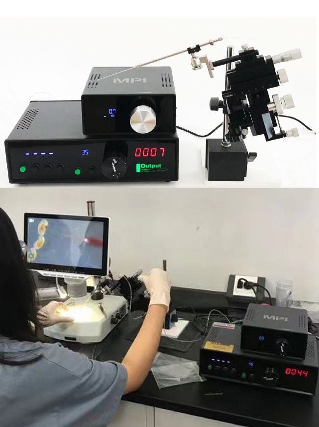 主要用途:膜片鉗系統(tǒng)中微電極的拋光,動(dòng)物ICSI注射針彎角、動(dòng)物卵細(xì)胞吸附針的收口和彎角,微流控噴頭的斷針開口等;動(dòng)物ICSI注射針的針開口研磨以及斜切口,微流控噴頭研磨開口,細(xì)胞捕獲針研磨開口等。