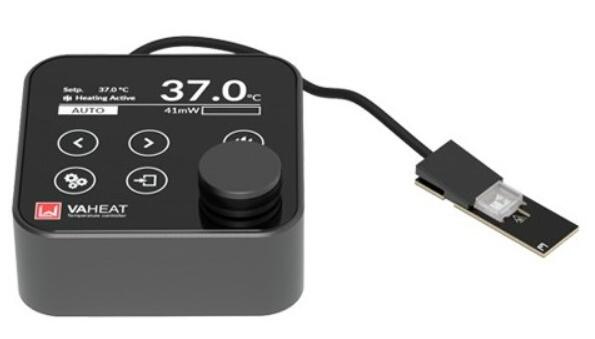 上述因素為實驗帶來諸多不便。因此,選擇精準、易操作的溫度控制器十分重要。鑒于上述問題,德國INTERHERENCE公司近期推出了超精準可調節(jié)溫度控制模塊VAHEAT。VAHEAT是一款可廣泛應用于光學顯微鏡的精密溫度控制模塊,可兼容市面上絕大多數(shù)的商用顯微鏡和物鏡。其特殊的智能基底將透明加熱元件與高靈敏度溫度探頭相結合,實現(xiàn)了在高清成像的同時快速和精確的溫度調節(jié),與傳統(tǒng)的加熱儀相比,VAHEAT具有非常大的優(yōu)勢: