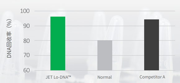 潔特生物L(fēng)o-DNA™低核酸吸附微量離心管對核酸樣品具有更高的回收率,能將核酸樣品損失最小化。