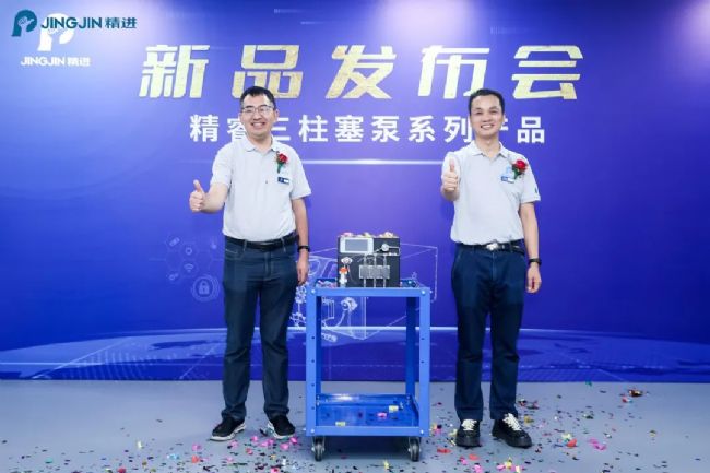 本次精進(jìn)科技五周年慶典上,精進(jìn)科技董事長(zhǎng)孔桂昌先生、副總經(jīng)理張思相先生與大家一同見證了精睿三柱塞泵新品揭幕。精睿三柱塞泵系列產(chǎn)品是精進(jìn)科技花了2年多的時(shí)間用全新技術(shù)路線打造的一款產(chǎn)品。該款產(chǎn)品在經(jīng)過諸多客戶的使用驗(yàn)證后,性能指標(biāo)達(dá)到預(yù)期,在2023年6月初正式推向市場(chǎng)。