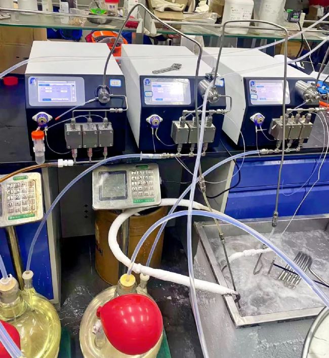 精睿三柱塞精確進料系統(tǒng),連續(xù)運行40天,物料及流量為濃硫酸150mL/min,除了加料停止運行外,其余時間持續(xù)精準進料,讓項目得以順利實施。