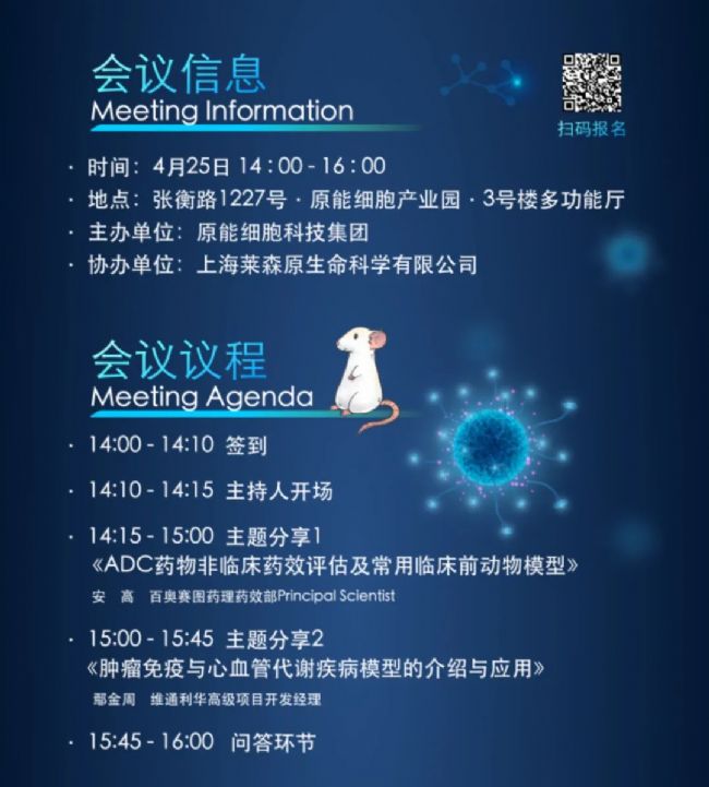 為了助力ADC藥物研究和應(yīng)用的發(fā)展,為腫瘤治療領(lǐng)域的進(jìn)步貢獻(xiàn)力量。將于2024年4月25日在原能細(xì)胞產(chǎn)業(yè)園內(nèi)舉辦“ADC藥物及可用臨床前動(dòng)物模型”分享會(huì)。聚焦ADC藥物及其在臨床前動(dòng)物模型中的應(yīng)用,深入探討ADC藥物的最新研究進(jìn)展、臨床前動(dòng)物模型的建立和應(yīng)用、ADC藥物在臨床前研究中的挑戰(zhàn)與解決方案等內(nèi)容。