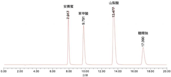 微純Upulite® SP C18-PR 防腐劑專用柱,能使苯甲酸、山梨酸、糖精鈉有良好的峰形和分離度,滿足各種食品基質(zhì)的日常分析需求。