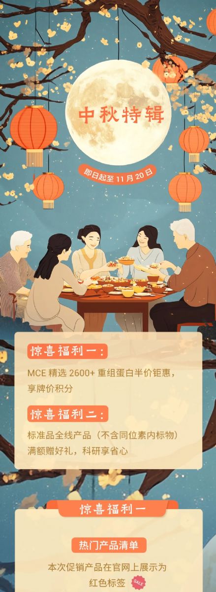 MCE中秋福利:重組蛋白半價(jià)鉅惠,標(biāo)準(zhǔn)品滿額贈(zèng)禮