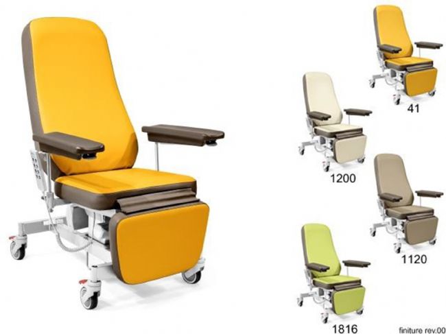 - 漫威采血椅:多功能扶手椅旨在幫助患者在治療期間以及在醫(yī)療機(jī)構(gòu)內(nèi)的日常使用(包括血液采樣)。扶手椅,高度可變,帶 3 級電動伸縮柱,分為 3 個部分,其中兩個部分可電動獨(dú)立調(diào)節(jié)(靠背和腿托)。防火可變密度填充物提供最佳舒適度,采用非常耐用的防火仿皮革裝飾,防水且易于清潔和消毒。底座框架和坐面承重結(jié)構(gòu)采用環(huán)氧粉末涂層鋼管制成,具有抗菌保護(hù)。