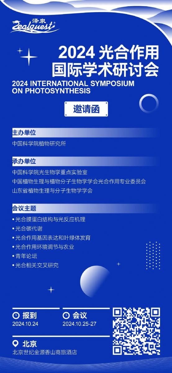 光合作用是地球上最重要的化學(xué)反應(yīng),與農(nóng)業(yè)、能源、環(huán)境等問題息息相關(guān),為推動(dòng)我國光合作用研究的科技進(jìn)步,加強(qiáng)該領(lǐng)域國際合作與交流,給科研人員提供一個(gè)面向國際展示最新成果、激發(fā)和交流思想、探索未來合作的平臺(tái)。“2024光合作用國際研討會(huì)”將于10月24日- 27日在北京舉辦。上海澤泉科技股份有限公司應(yīng)邀參加并設(shè)立站展臺(tái),現(xiàn)場為各位參會(huì)老師介紹最新的光合作用研究技術(shù),期待各位老師蒞臨指導(dǎo),交流。
