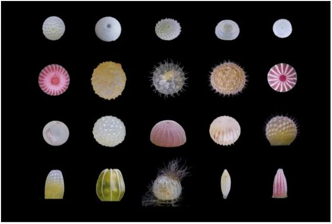 形態(tài)各異的蝴蝶卵。由鄭志剛拍攝。
