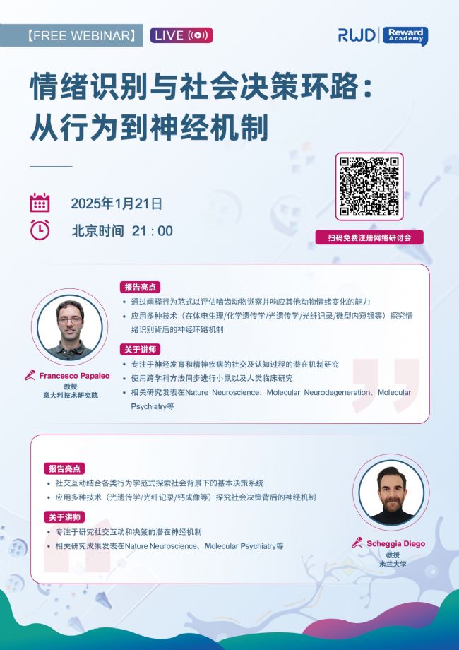 直播主題:情緒識(shí)別與社會(huì)決策環(huán)路:從行為到神經(jīng)機(jī)制