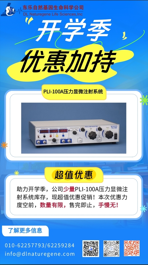 助力開(kāi)學(xué)季,公司少量PLI-100A壓力顯微注射系統(tǒng)庫(kù)存,現(xiàn)超值優(yōu)惠促銷!本次優(yōu)惠力度空前,數(shù)量有限,售完即止,手慢無(wú)!