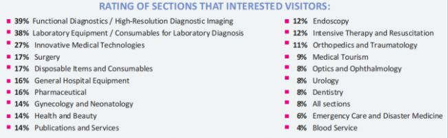2025年共計有來自來自比利時、白俄羅斯、英國、德國、埃及、印度、意大利、哈薩克斯坦、中國、巴基斯坦、波蘭、俄羅斯、新加坡、土耳其、烏茲別克斯坦、烏克蘭等16個國家的400多家公司參展;優(yōu)質(zhì)觀眾高達4970位,他們來自各科醫(yī)生、藥劑師和企業(yè)代表的參觀者對博覽會的高質(zhì)量內(nèi)容以及醫(yī)療技術(shù)和實驗室設(shè)備領(lǐng)域的創(chuàng)新解決方案數(shù)量給予了高度認可。