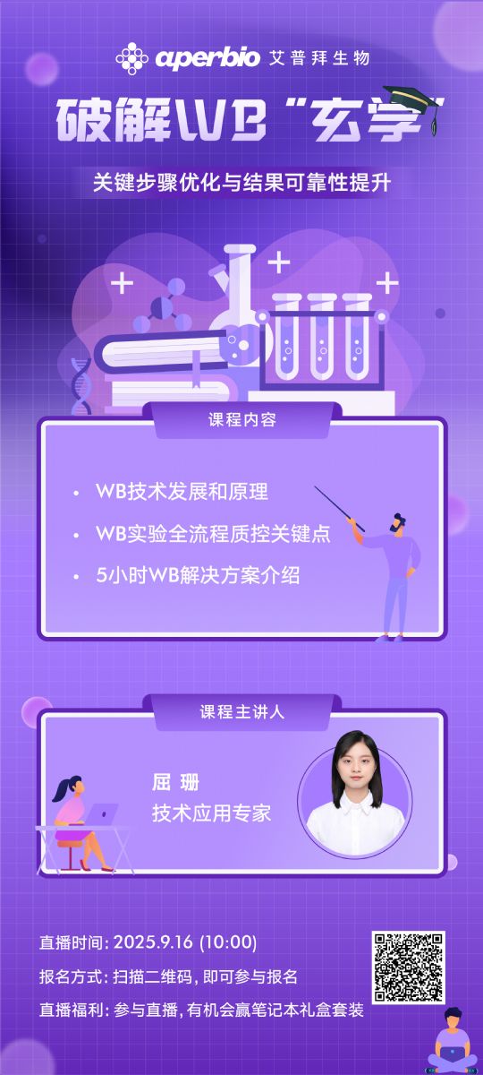 9月16日直播課將直擊WB實(shí)驗(yàn)核心癥結(jié),艾普拜生物5小時(shí)WB方案如何快速高效解決實(shí)驗(yàn)困境?掌握讓W(xué)B“告別玄學(xué)”的實(shí)戰(zhàn)技巧,讓每一次實(shí)驗(yàn)都產(chǎn)出可靠數(shù)據(jù),加速科研進(jìn)程!