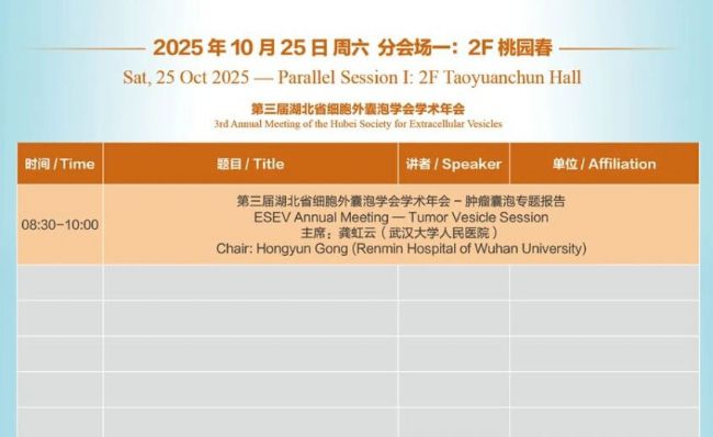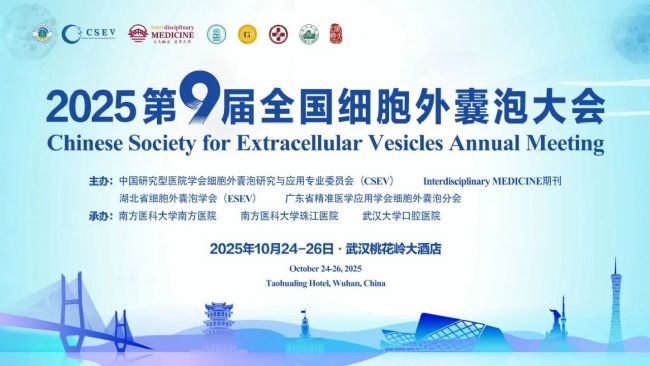 2025年CSEV第九屆全國(guó)細(xì)胞外囊泡大會(huì)將于10月24-26日在武漢市桃花嶺大酒店舉辦。此次會(huì)議由中國(guó)研究型醫(yī)院學(xué)會(huì)細(xì)胞外囊泡研究與應(yīng)用專業(yè)委員會(huì)(CSEV)、Interdisciplinary MEDICINE期刊、湖北省細(xì)胞外囊泡學(xué)會(huì)及廣東省精準(zhǔn)醫(yī)學(xué)應(yīng)用學(xué)會(huì)細(xì)胞外囊泡分會(huì)聯(lián)合主辦,由南方醫(yī)科大學(xué)南方醫(yī)院、南方醫(yī)科大學(xué)珠江醫(yī)院及武漢大學(xué)口腔醫(yī)院聯(lián)合承辦。