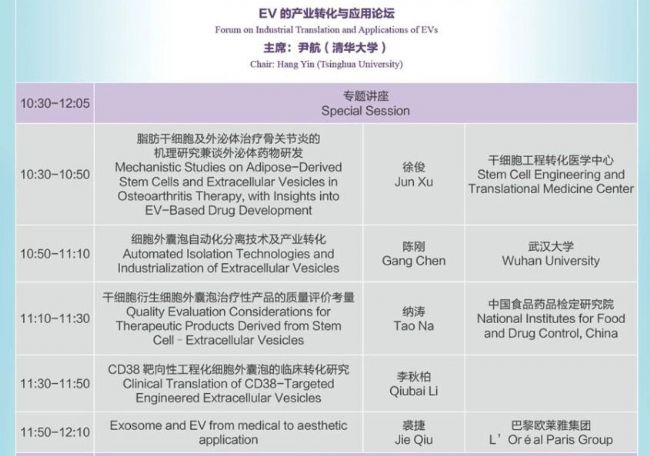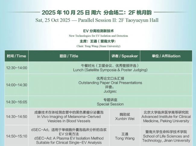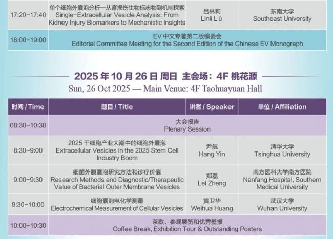 本次會(huì)議將延續(xù)精品辦會(huì)的理念,以“交叉融合、啟迪創(chuàng)新”為主題,邀請(qǐng)國(guó)際細(xì)胞外囊泡學(xué)會(huì)(ISEV)以及國(guó)內(nèi)本領(lǐng)域杰出專家就細(xì)胞外囊泡研究的最新成果、研究趨勢(shì)以及面臨的問(wèn)題展開(kāi)報(bào)告以及征文交流,并邀請(qǐng)行業(yè)專家及相關(guān)企業(yè)對(duì)細(xì)胞外囊泡研究產(chǎn)業(yè)轉(zhuǎn)化的前景及關(guān)鍵問(wèn)題進(jìn)行探討。會(huì)議內(nèi)容主要包含細(xì)胞外囊泡形成分泌機(jī)制,細(xì)胞外囊泡分離、檢測(cè)、組學(xué)分析及工程化新技術(shù)研究與臨床應(yīng)用,細(xì)胞外囊泡在癌癥、神經(jīng)系統(tǒng)疾病、心血管疾病、免疫及感染性等重大疾病診斷與治療中的研究與臨床應(yīng)用,微生物、尿液、中草藥、干細(xì)胞等各類細(xì)胞外囊泡前沿研究與應(yīng)用等。