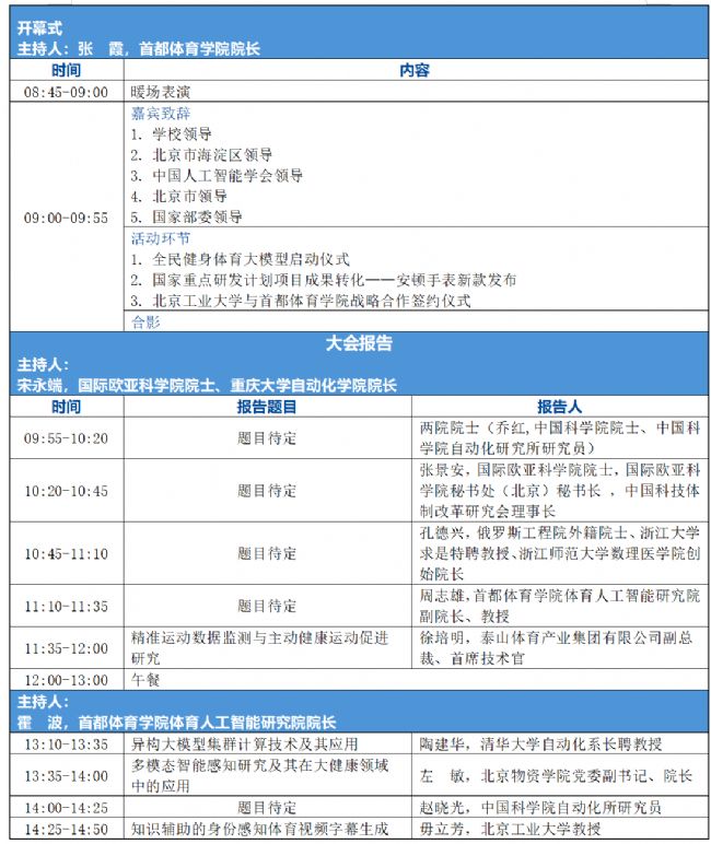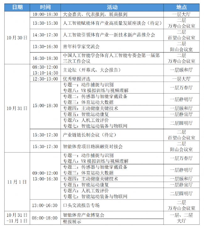 第三屆體育人工智能大會日程