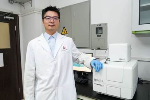 蔣盛威博士與實驗室里的安捷倫BioTek Synergy H1 多功能微孔板檢測儀