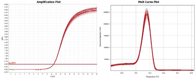 以小鼠mRNA為模板,設(shè)置復(fù)孔,結(jié)果顯示Magic One-step RT-qPCR Mix復(fù)孔結(jié)果一致